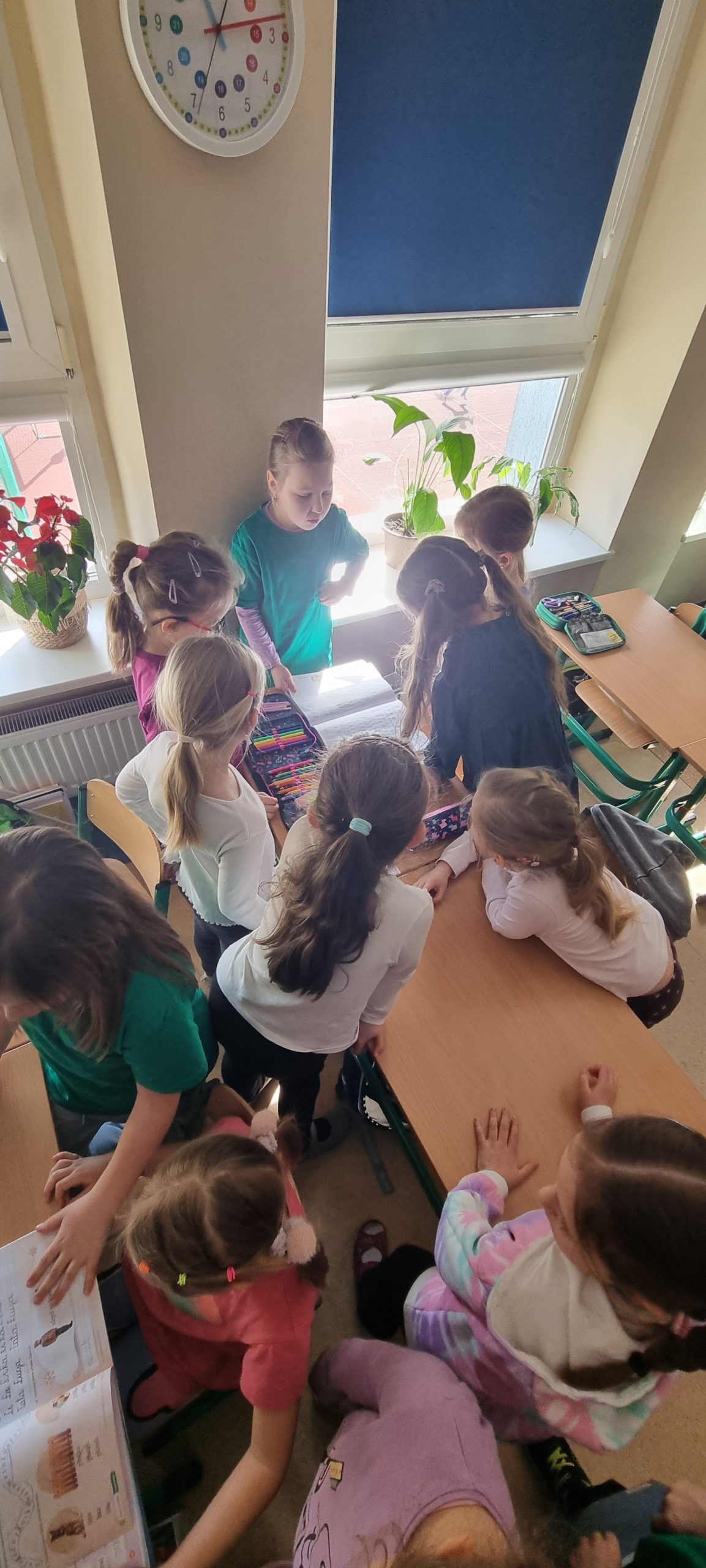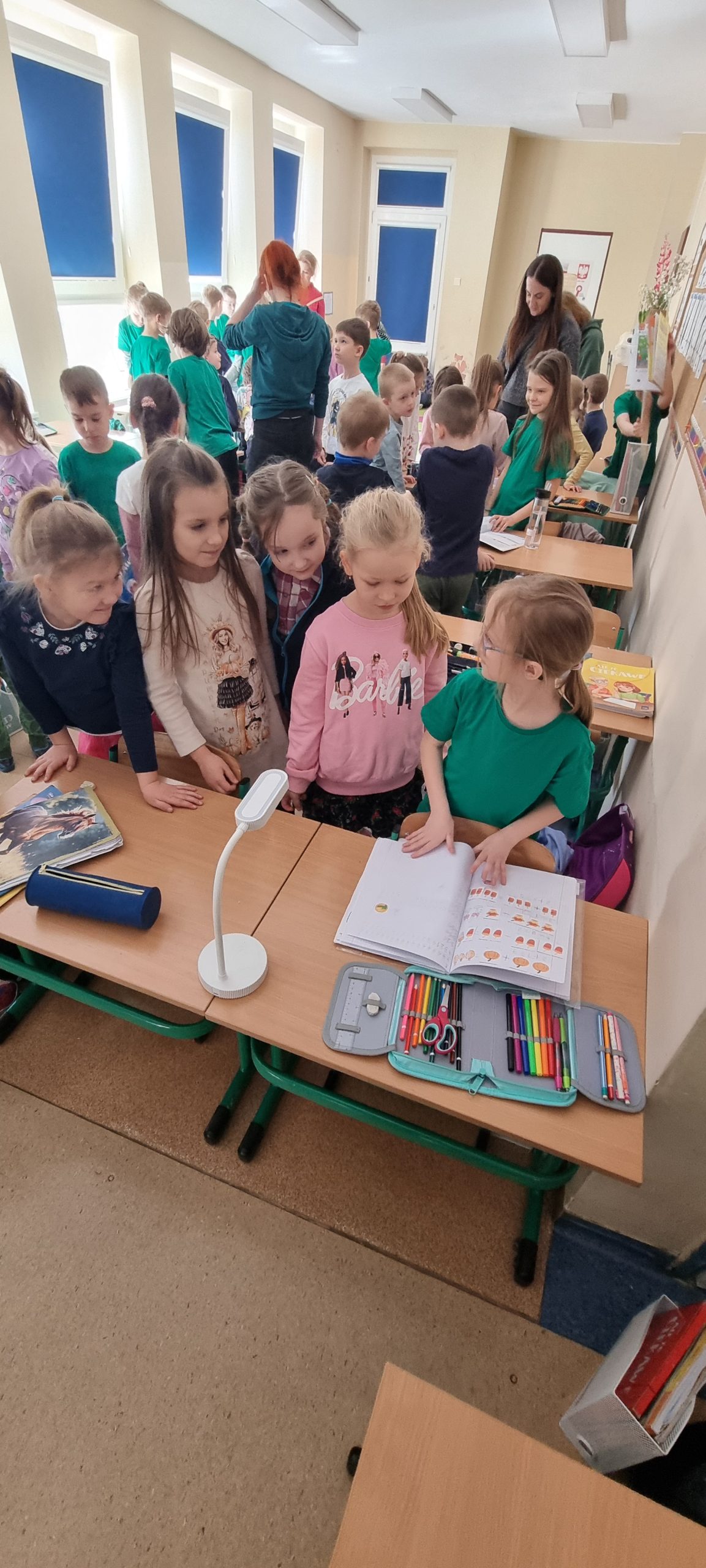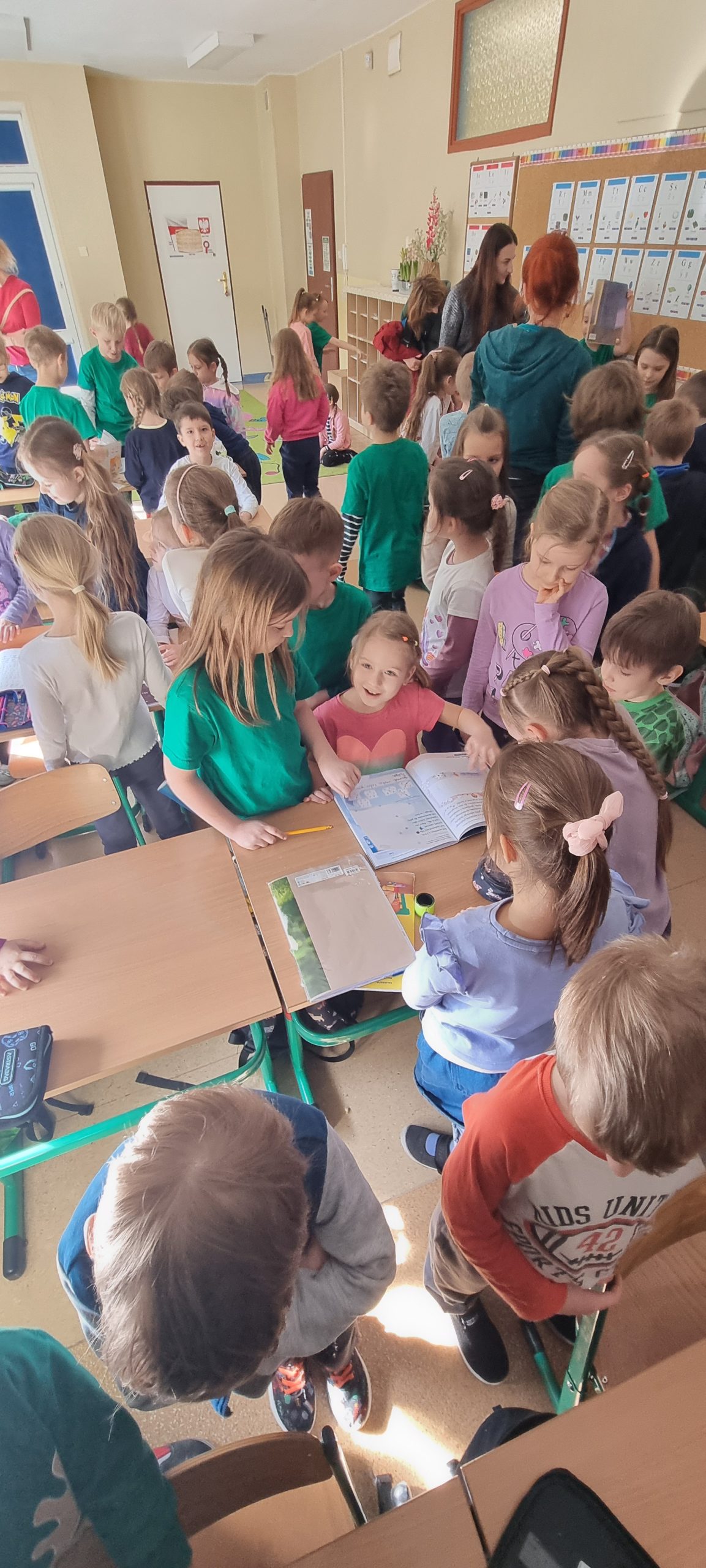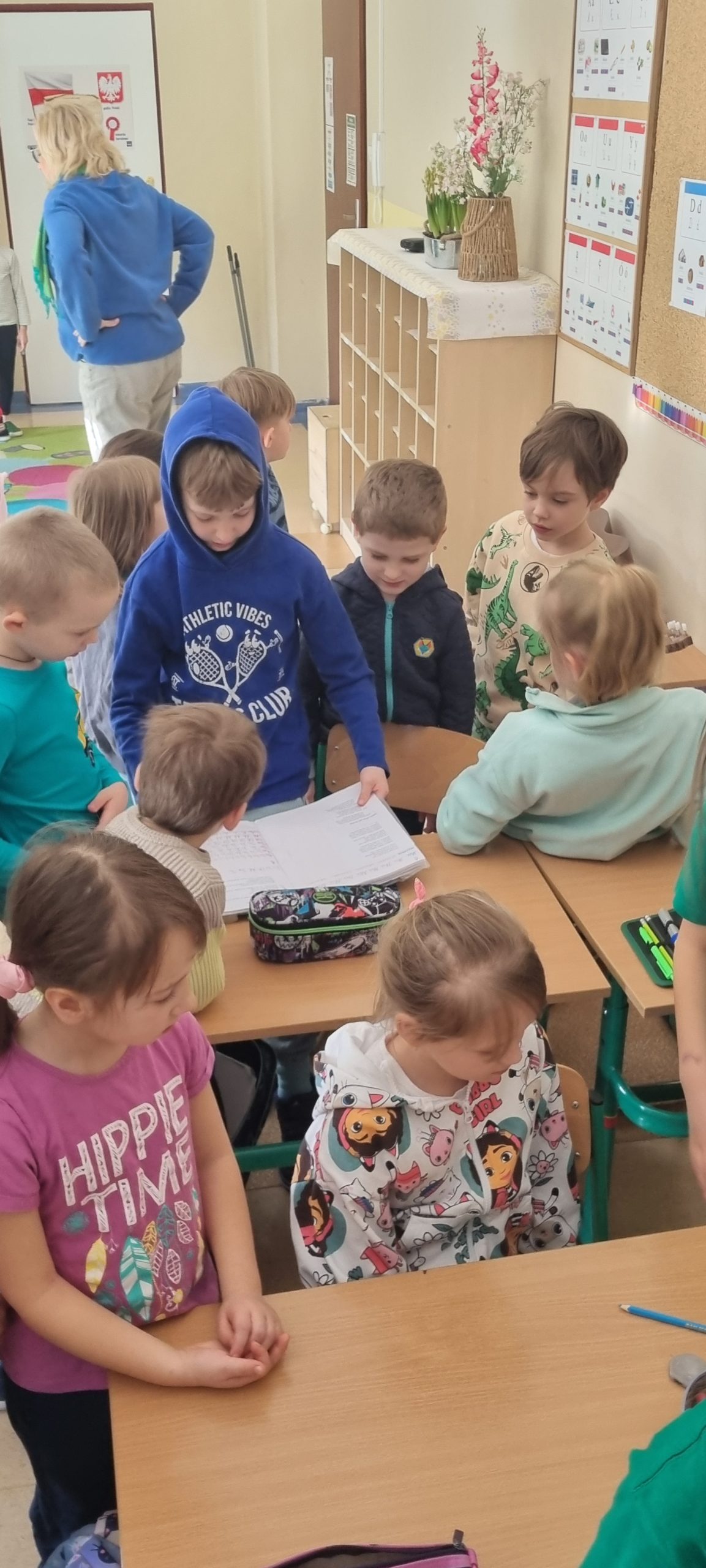Jednym z ważniejszych punktów tej wizyty było zwiedzanie naszej szkoły. Uczniowie klasy 1a wraz z wychowawczynią z entuzjazmem oprowadzili przedszkolaków po różnych zakamarkach, dzieląc się swoimi doświadczeniami i opowiadając, jak wygląda ich codzienne życie w szkole. Dzieci miały okazję zobaczyć książki i zeszyty swoich starszych kolegów, a także podziwiać specjalnie przygotowany taniec „Różowe okulary”, który dodatkowo umilił im czas.