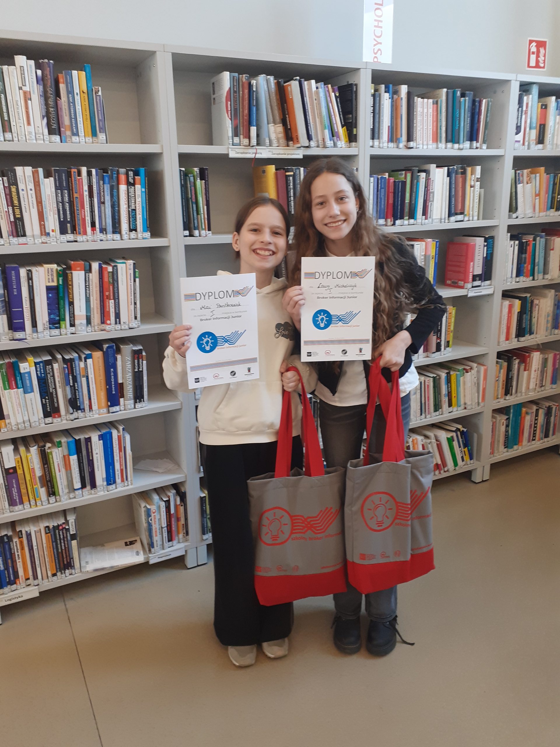 Uczennice klasy 6 b Laura Michalczyk i Maja Pustkowiak zdobyły I miejsce w międzyszkolnym konkursie „Broker Informacji Junior”,