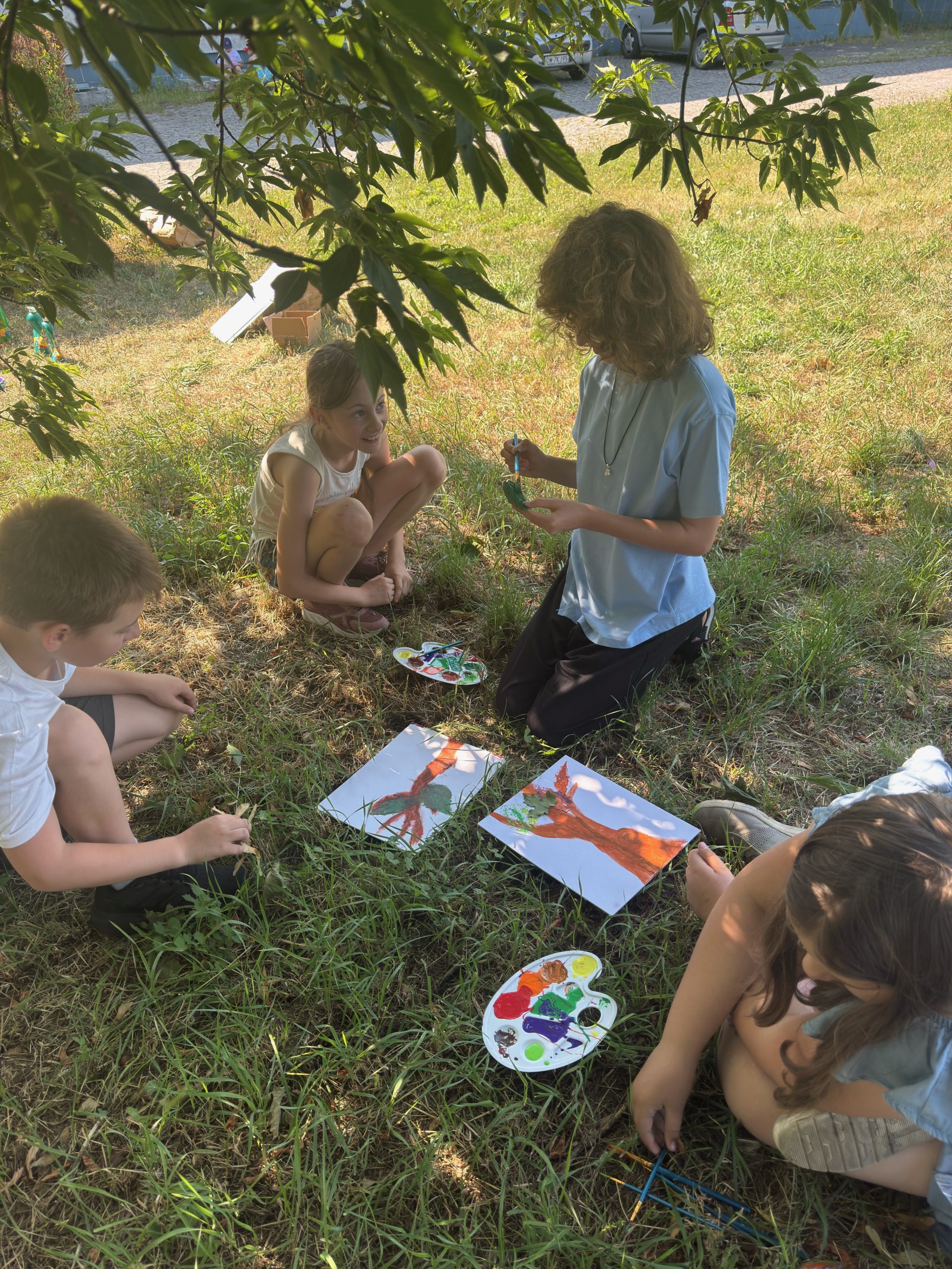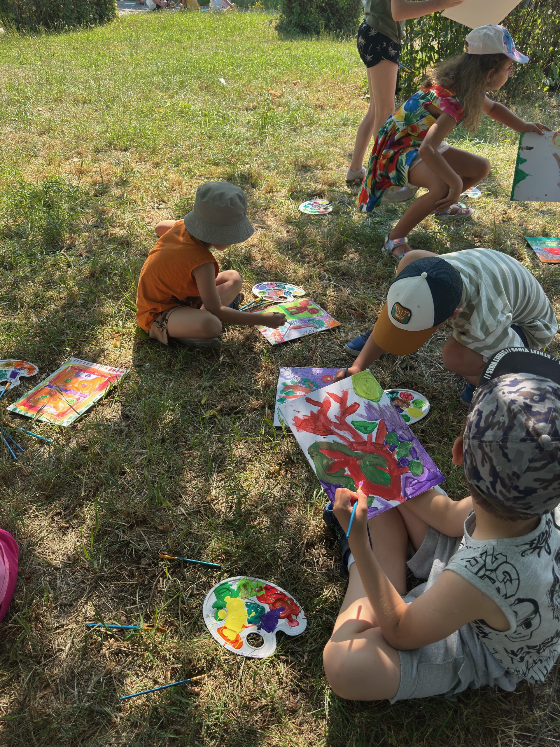 Korzystając z chłodu poranka, na boisku szkolnym, dzieci stworzyły własne prace na płótnie malarskim. Pod opieką i ze wsparciem Wychowawców Półkolonii: p. Anny Jeleń – Smolińskiej, p. Karoliny Kurzak, p. Sary Szwackiej i p. Julity Wiertelak, rozpoczęły piękny proces twórczy.
