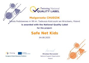 Otrzymane wyróżnienie to powód do ogromnej dumy i motywacja do dalszej aktywnej pracy w projektach międzynarodowych. Gratulujemy wszystkim uczniom i nauczycielom zaangażowanym w projekt – to dzięki ich kreatywności i wytrwałości „Safe Net Smart Kids” osiągnął tak wysoki poziom!