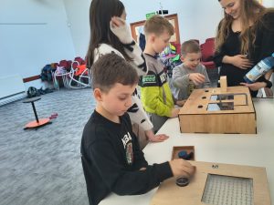 Podczas zajęć dzieci mogły eksperymentować fizycznie i chemicznie, eksplorując różnorodne przybory oraz interaktywne eksponaty. Uczniowie z dużym zainteresowaniem poznawali m.in. zjawiska związane z prądem, światłem i magnetyzmem, a także obserwowali działanie ciekawych urządzeń naukowych.
