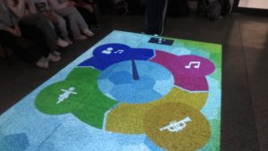 Podczas zajęć muzycznych można wzbogacić swoją wiedzę w zakresie muzyki, nauczyć się śpiewać i grać na instrumencie, czy cieszyć się słuchaniem interesujących nas utworów. Jednym z narzędzi pomocnych na takich zajęciach okazuje się też Magiczny Dywan. Uczniowie kl. 6A mogli się o tym przekonać podczas zabaw muzycznych z wykorzystaniem tej pomocy dydaktycznej. W atrakcyjny sposób, zbiorowo, parami lub indywidualnie utrwalali i poszerzali swoje wiadomości dotyczące słynnych muzyków, budowli i utworów muzycznych, dyrygentury, orkiestry, głosów, akompaniamentu, dźwięków, znaków chromatycznych, dynamiki, artykulacji, gry na instrumentach czy tańców, a wszystko to podczas aktywności ruchowej, sprzyjającej pracy mózgu i zdolnościom poznawczym. Dzieci zakończyły zabawy relaksem, przy odgłosach pluskającej wody.
