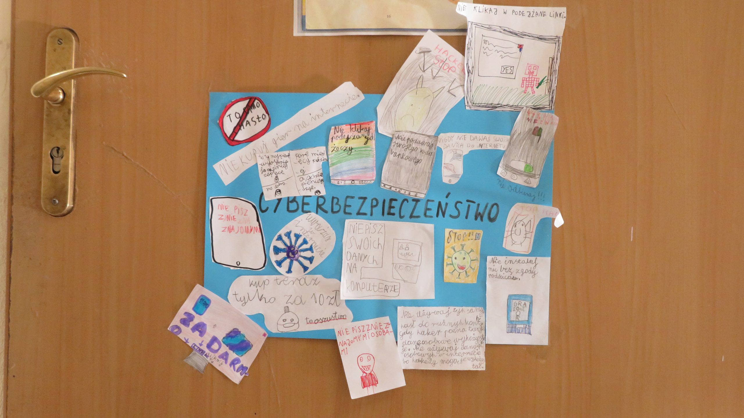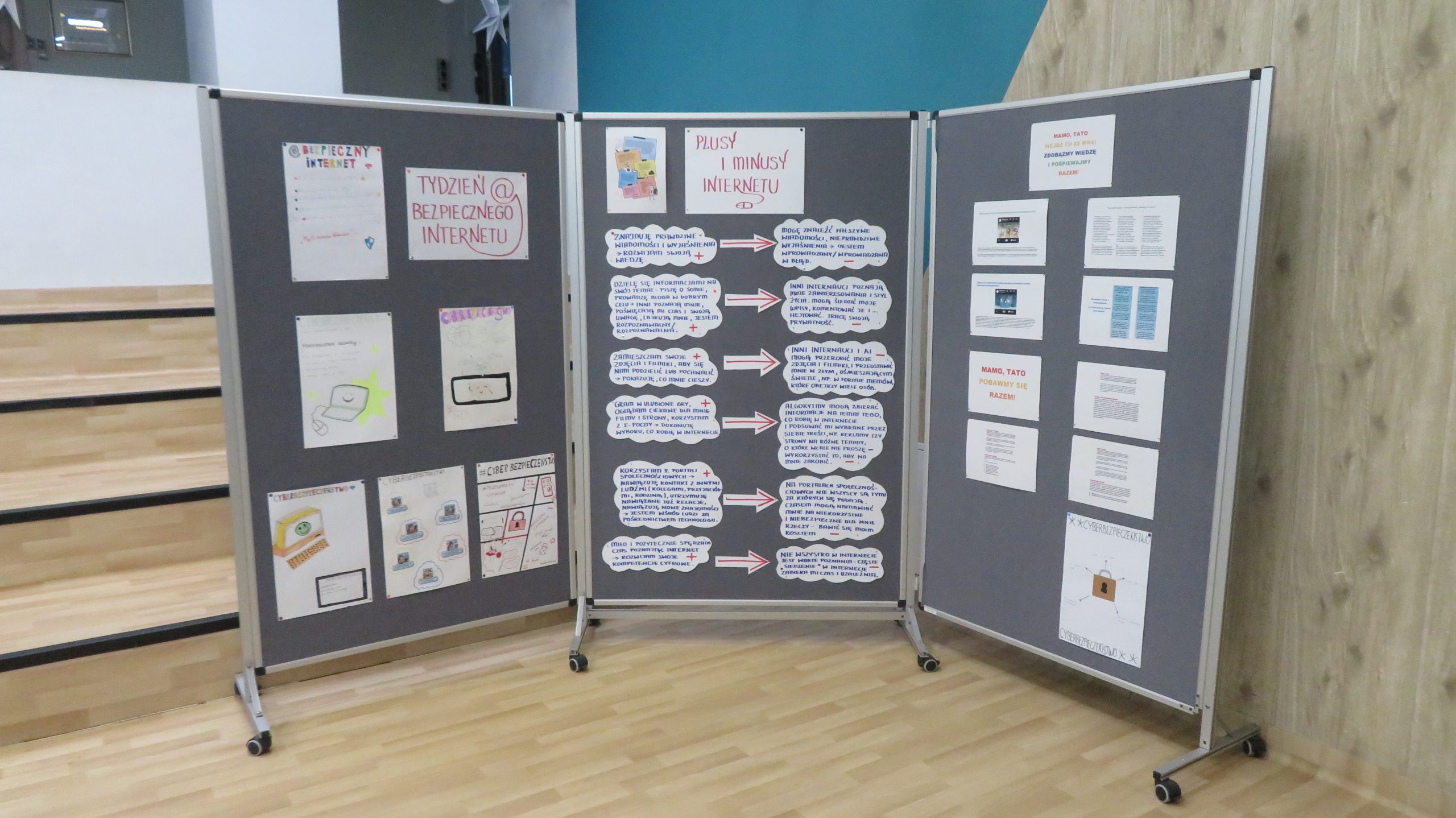 W dniach 16-20 lutego 2026 r. w naszej szkole obchodziliśmy Tydzień Bezpiecznego Internetu. W czasie tego tygodnia, na lekcjach i w czasie zajęć świetlicowych, realizowaliśmy szereg przedsięwzięć związanych z poznaniem zasad netykiety, bezpieczeństwa w Internecie, przeciwdziałania hejtowi, uważności na komputerowe wirusy i dbania o swój wizerunek w Internecie. W holu głównym szkoły prezentowana była wystawa plakatów o cyberbezpieczeństwie (wykonanych przez uczniów z kl. IV-VIII na lekcjach plastyki). Stworzona została także wystawa prezentująca plusy i minusy Internetu oraz propozycje wspólnych działań z rodzicami dotyczących tych obszarów. Uczniowie wzięli także udział w konkursie na wiersz promujący zasady bezpiecznego korzystania z Internetu.