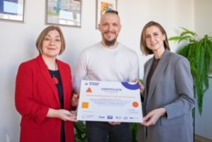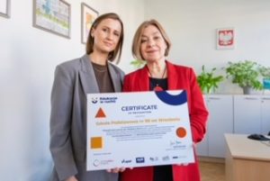 Oprócz certyfikatu dla całej placówki, który z radością przyjęły pani dyrektor Beata Berezowska i szkolny koordynator projektu pani wicedyrektor Milena Opioła, imienny certyfikat otrzymała również pani Zofia Regulska, wychowawczyni klasy 2a, realizująca projekty Edukacja w ruchu, ABC of Mental Health, ambasadorka metody mini-EDUball.