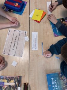Uczniowie klasy 5c po raz kolejny przekonali się, że nauka może być fascynującą przygodą. W ramach obchodzonej tradycyjnie w Szkole Podstawowej nr 99 im. T. Kościuszki we Wrocławiu Kreatywnej środy bez plecaka przenieśli się do średniowiecznego miasta, gdzie – przy dźwiękach muzyki z epoki – pracowali w czterech zespołach nad zadaniami związanymi z rozdziałem Społeczeństwo średniowiecza.