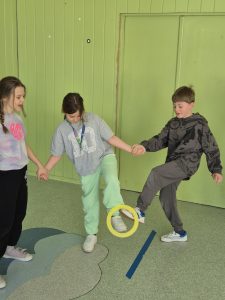 W tym dniu ważną rolę odegrał także ruch. Podczas zajęć sportowych dzieci wykonywały zadania zespołowe, ćwiczyły wytrzymałość oraz koordynację, a także realizowały projekty wymagające współpracy i aktywności fizycznej.