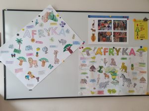 W ramach przygotowań do omawiania lektury Afryka Kazika dzieci pracowały w grupach, poznając kulturę i przyrodę Afryki. Tworzyły plakaty pełne ciekawostek i inspiracji, rozwijając przy tym umiejętność współpracy i kreatywnego myślenia.