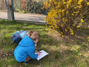 Dzieci rozwijały również swoją kreatywność, tworząc lapbooki o tematyce wiosennej, wykorzystując zarówno przygotowane materiały, jak i własne pomysły. Nie zabrakło także zajęć terenowych – uczniowie wcielili się w rolę detektywów przyrody, obserwując oznaki wiosny w najbliższym otoczeniu szkoły.