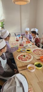 Dzieci brały udział w warsztatach kulinarnych, podczas których samodzielnie przygotowywały pizzę z ulubionymi dodatkami. Przy okazji poznały ciekawostki dotyczące składników idealnego ciasta oraz uczyły się efektownych trików kulinarnych. Nie zabrakło również zagadek i dobrej zabawy.