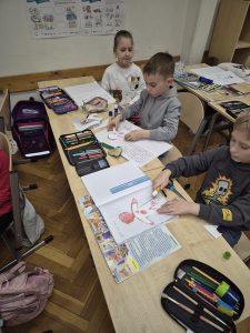 Klasy 1B, 2A i 3D zrealizowały kolejne zajęcia w ramach projektu ABC of Mental Health. Tym razem uczniowie zastanawiali się nad tym czym jest stres, w jakich sytuacjach go odczuwamy oraz gdzie “mieszka” on w naszym ciele. Dowiedzieliśmy się, że stres jest naturalną reakcją organizmu, a w niektórych sytuacjach bywa nawet przydatny! Uczniowie zaznaczali na kartach miejsca kumulowania się stresu, poznali kilka prostych i skutecznych technik okiełznania go.